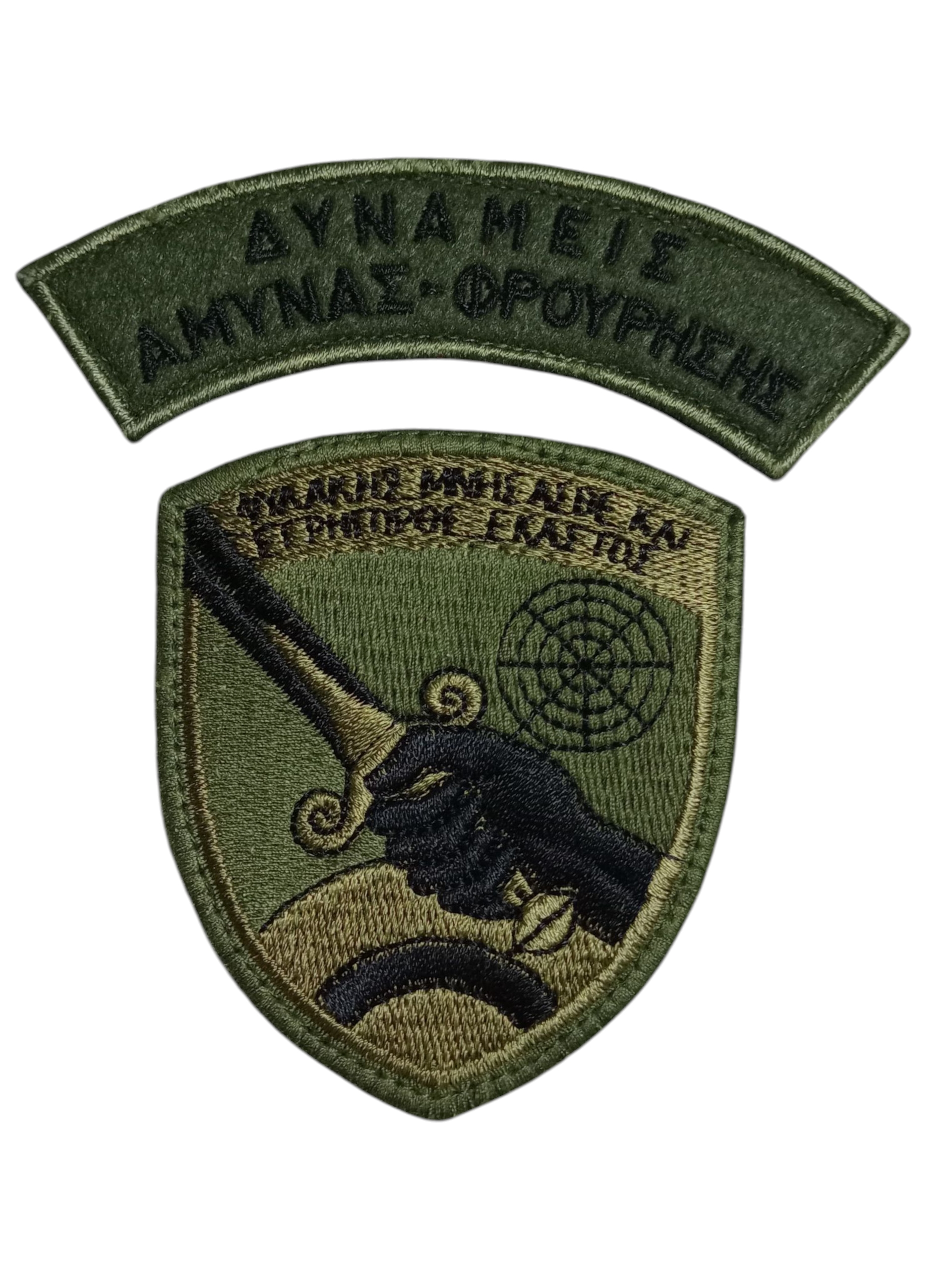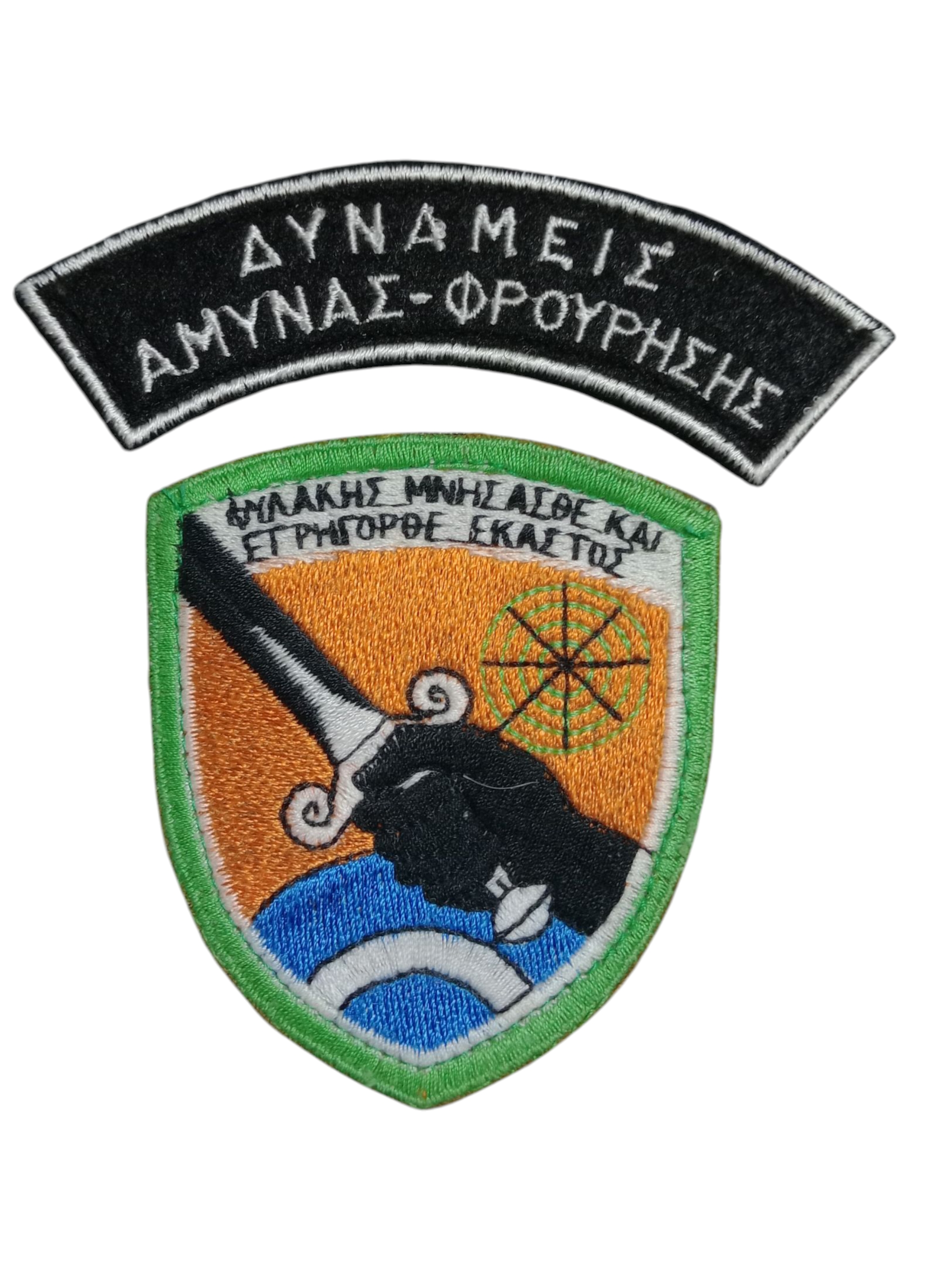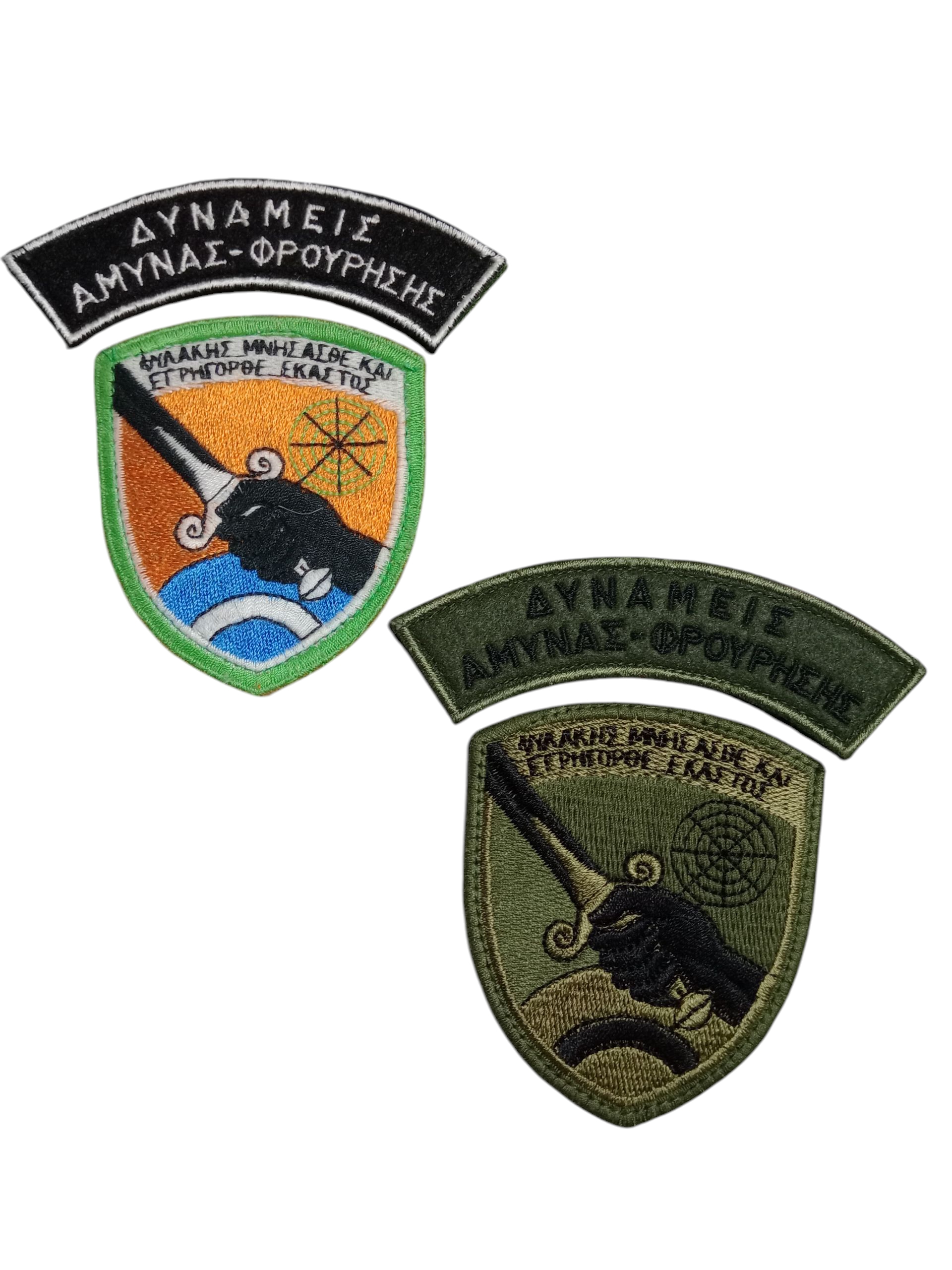 Το έμβλημα των Δυνάμεων Άμυνας Φρούρησης της Πολεμικής Αεροπορίας, αποτελείται από το σήμα και δύο ημικύκλια. Διατίθεται σε έγχρωμο και σε χαμηλής ορατότητας (low viz) σχέδιο, με velcro για εύκολη προσάρτηση.